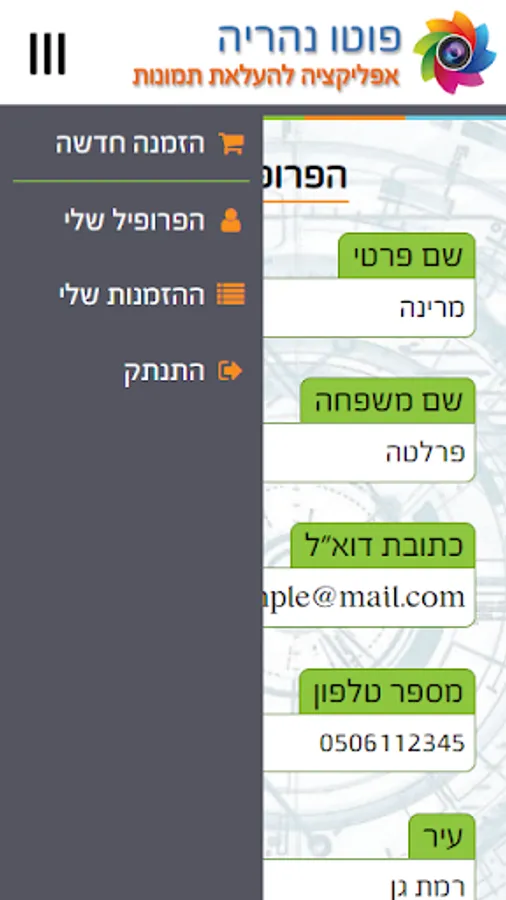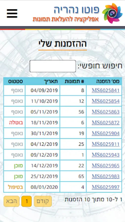 The original application for uploading photos to the Photo Nahariya shop.