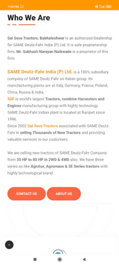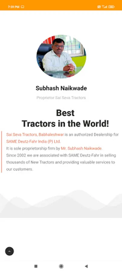 Sai Seva Tractors, Babhaleshwar is an authorized Dealership for SAME Deutz-Fahr India (P) Ltd. It is sole proprietorship firm. Mr. Subhash Narayan Naikwade is a proprietor of this firm.