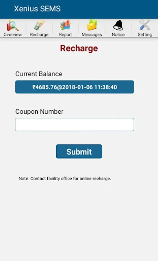 Xenius SEMS is an easy and fun to use Android application for customers using state of the art Smart Energy Management Solution from Radius using Xenia™ m2m Platform for Prepaid Energy Utilities. This application provides end users with greater visibility into their energy consumption patterns and their optimization, getting timely notifications for efficient energy management and replenishing their account balance.