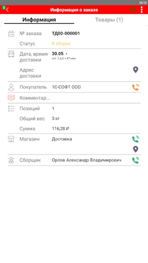 In the version "1C: Integrated Automation" for work on mobile devices, the functionality of assembly and courier delivery of goods is specially adapted.