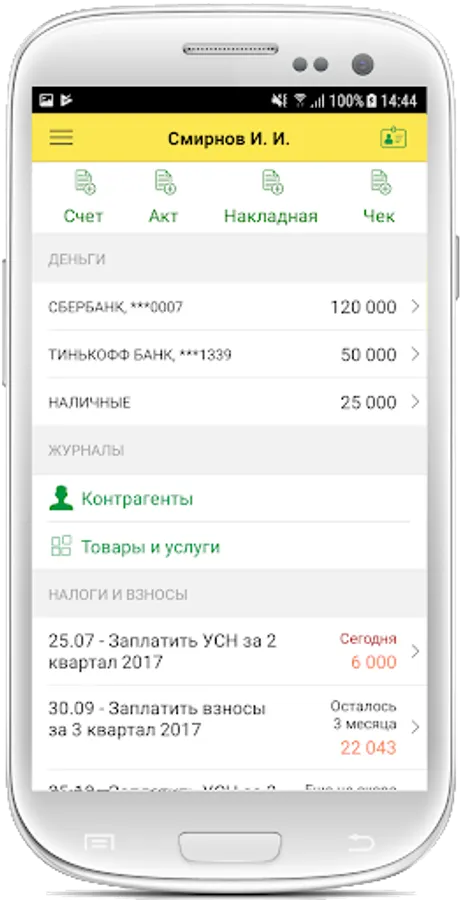 Mobile accounting for individual entrepreneurs, LLC organizations and self-employed.