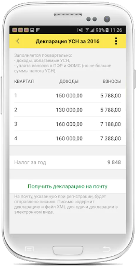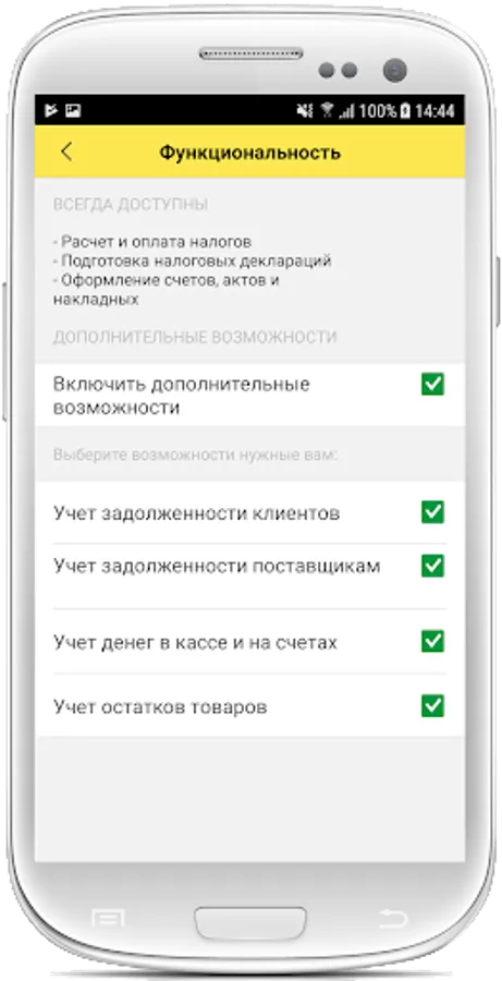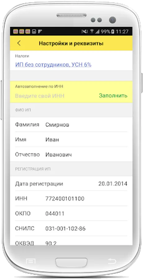- Calculates and reminds about taxes: simplified tax system, insurance premiums and patent, self-employed tax