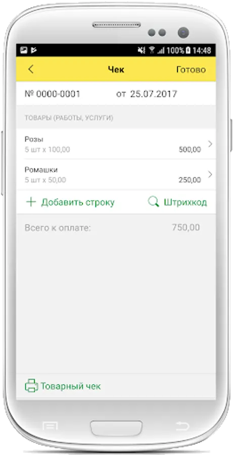 The application was created on the mobile platform 1C enterprise 8.3