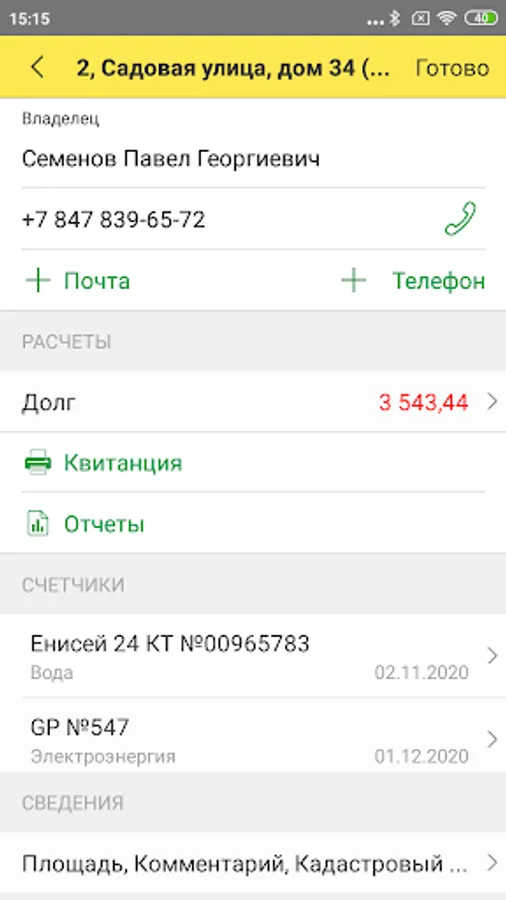 Doesn't require constant Internet access: enter meter readings and view the data on outstanding contributions anywhere. The application will carefully save the data and send it to 1C: Gardener as soon as possible or at your first request.