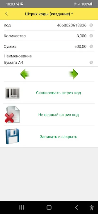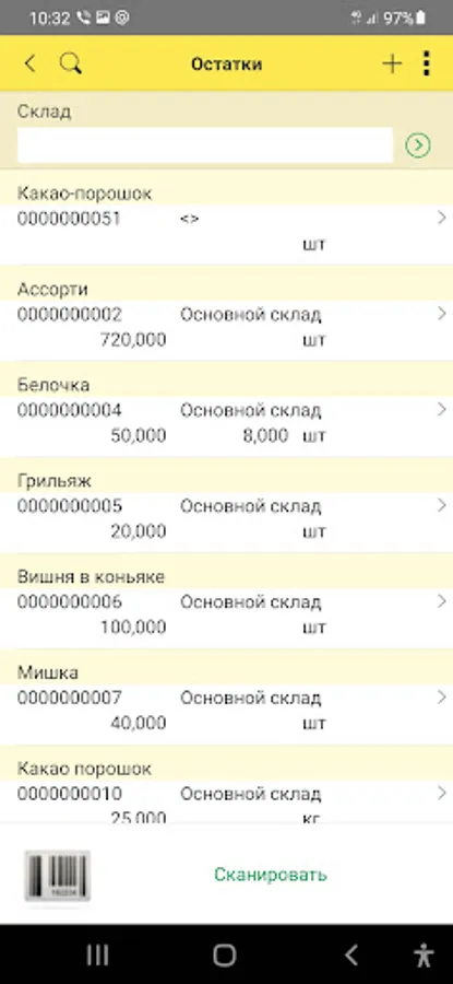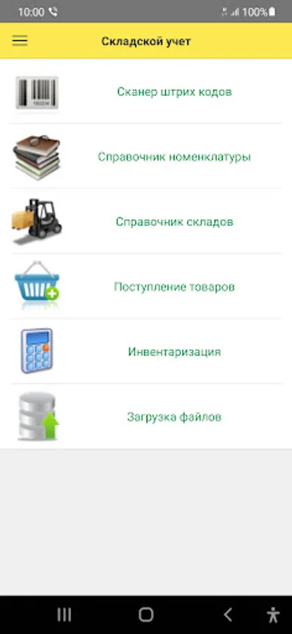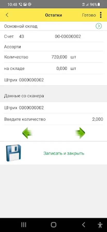 The barcode scanner allows you to scan barcodes, group them into separate groups or warehouses. Allows you to download from 1s a directory of nomenclature to search for a name when scanning, receipt, stock balances for inventory.