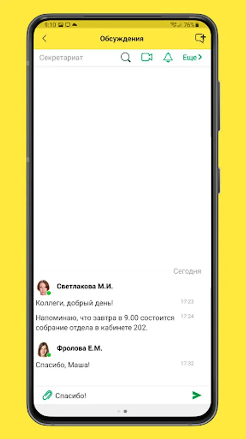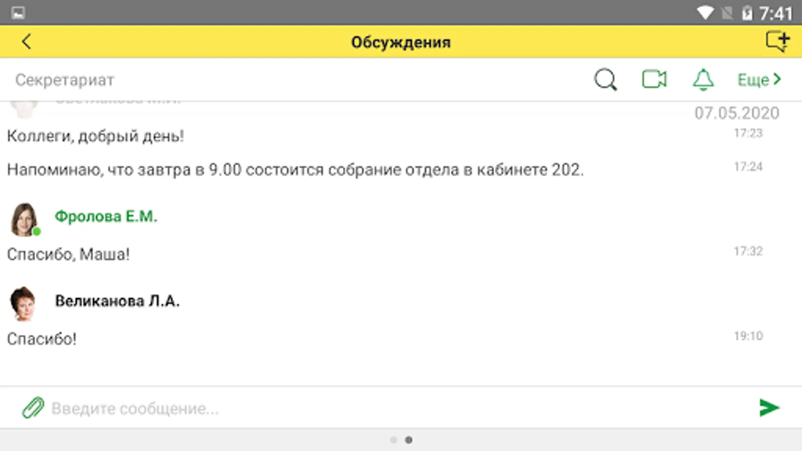 - Chat discussions, video calls, with the possibility of video conferencing and screen sharing. Now there is no need to use additional messengers to communicate with colleagues. And it is also absolutely safe - since all correspondence is stored in your database.