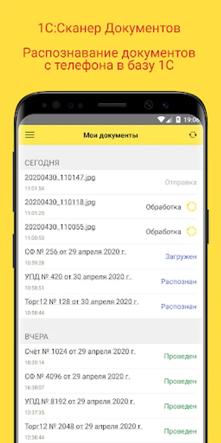 The mobile client of the service "1C: Recognition of Primary Documents" simplifies the entry of documents into the 1C program.