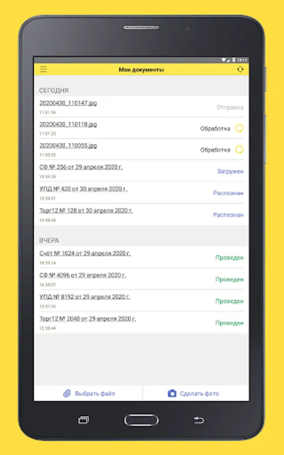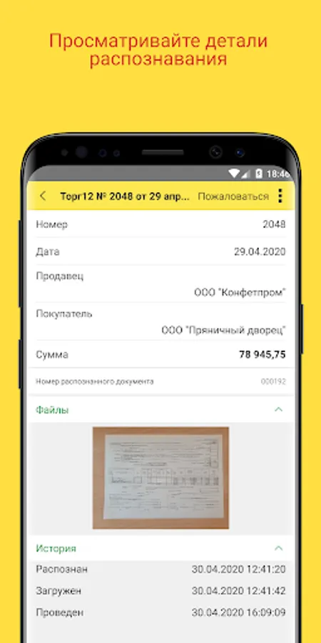 The necessary information will be extracted and prepared for entry into the 1C program in a convenient form. To do this, just take a photo of the documents and send them for recognition directly from the mobile application!