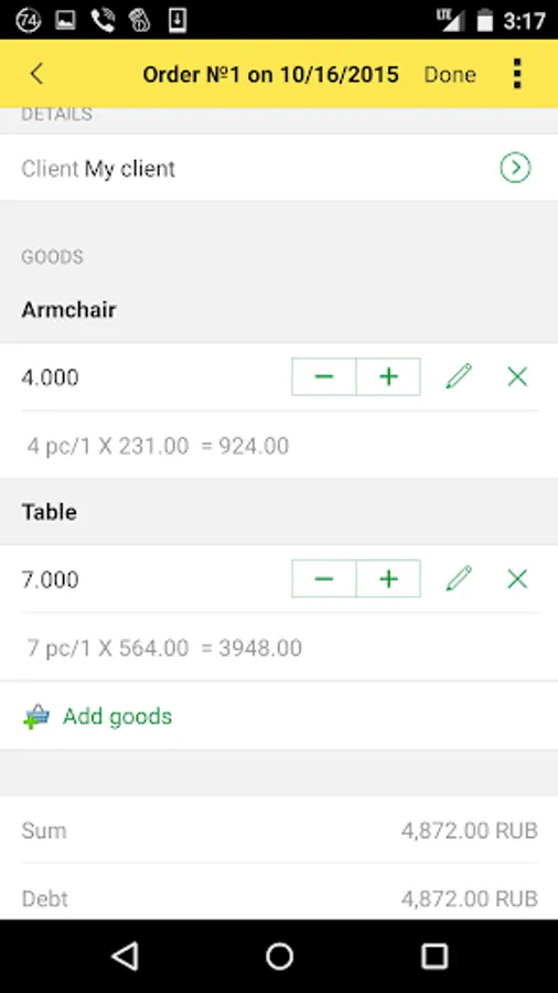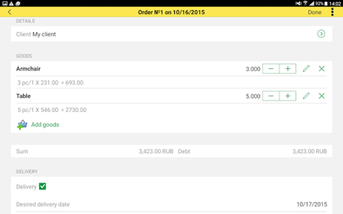 If necessary, you can group products in an arbitrary basis; Search the list can be done by barcode using the built-in camera of the mobile device;