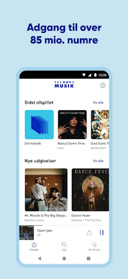 With TELMORE Music you have free access to all the music you want - no matter where you are. Get loose in the music streaming sky, where there are over 85 million music tracks to choose from. You must be registered for a mobile package to access TELMORE Music. Check which packages contain TELMORE Music at telmore.dk/mobil