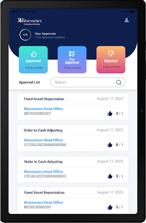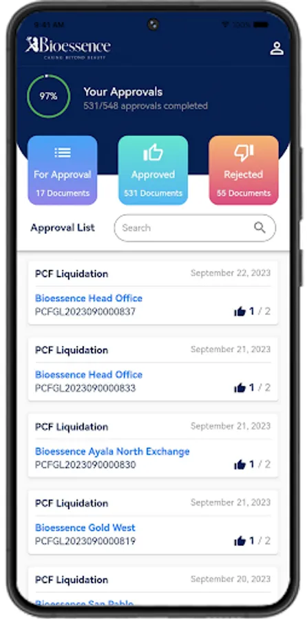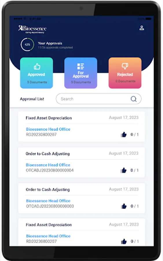Enjoy the approval features of the Bioessence Gold Approval App!