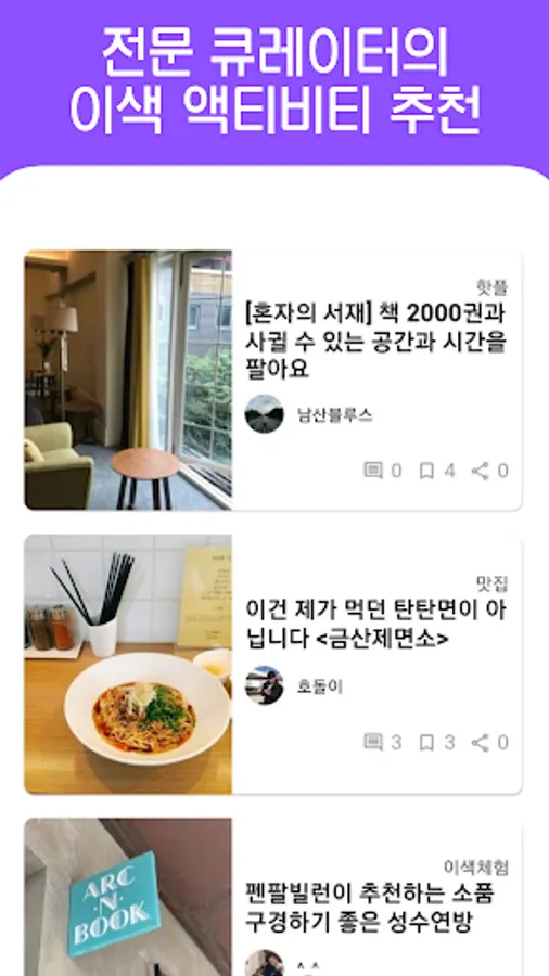 -Check out the unique places and experiences that professional curators have discovered every day, such as gourmets looking for old restaurants and baristas who only attended 300 cafes.