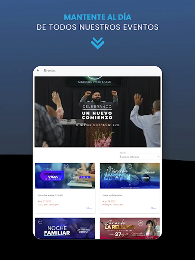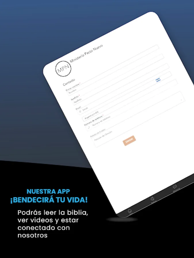 Accede a la aplicación móvil de Ministerio Pacto Nuevo. Conéctate con ellos vía mobile e internet. Recibe las últimas prédicas, fotos, eventos y noticias de tu iglesia — en cualquier momento y cualquier lugar.