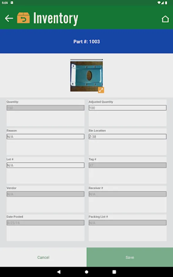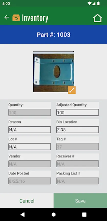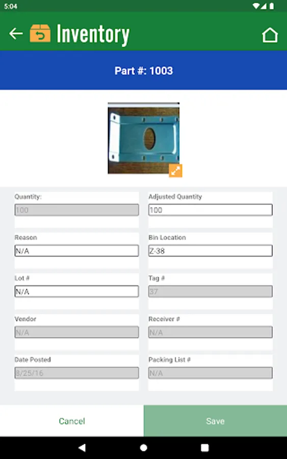 Stacking filters allow users to narrow the results for the part needed. From a single click see the quantity shown for the selected part and have the option to adjust the quantity to the desired amount. Once quantity for the selected part is adjusted, a reason for the change is automatically entered but can be adjusted. Users can also adjust the Bin Location and Lot Number while on the screen.