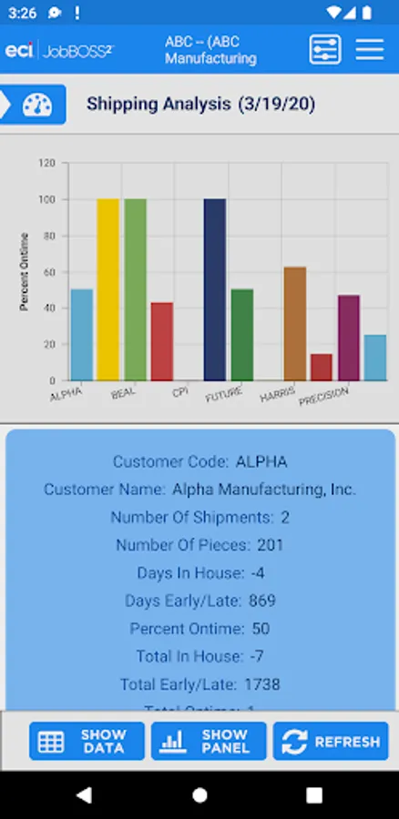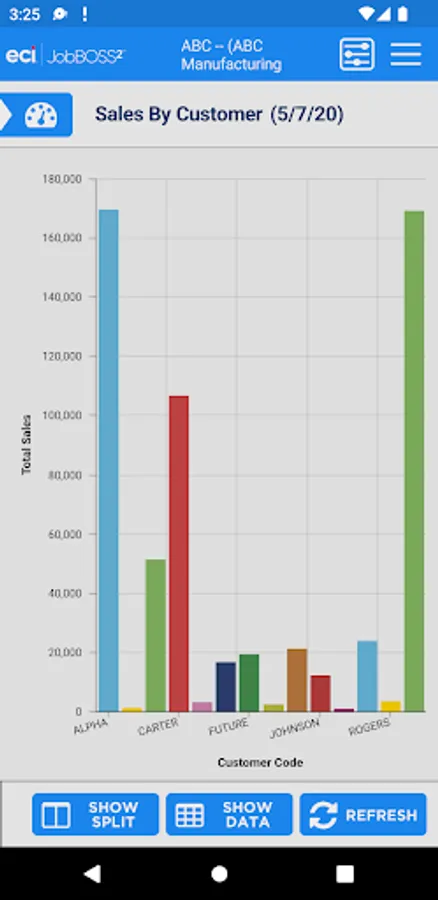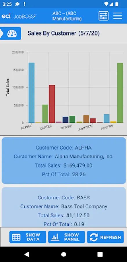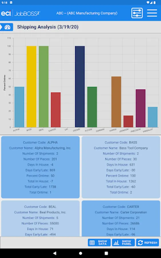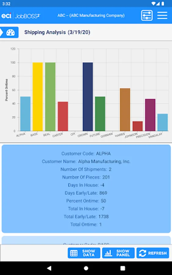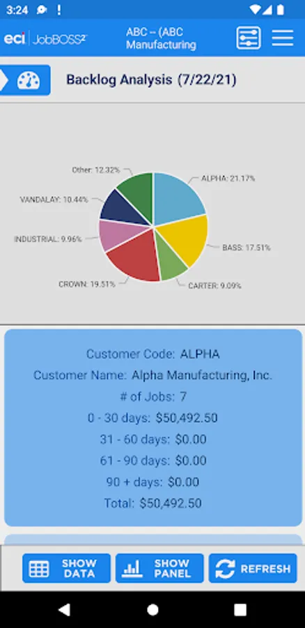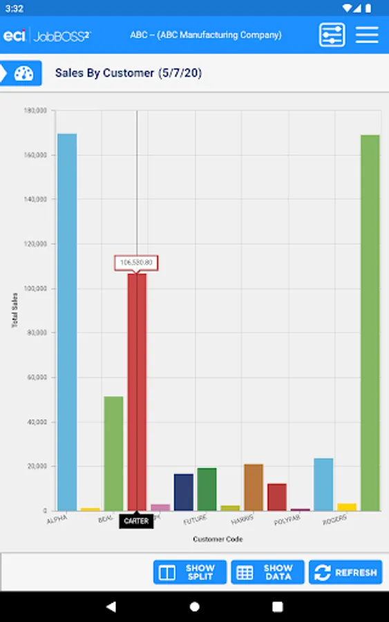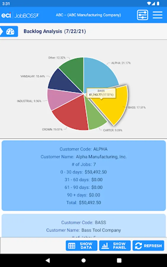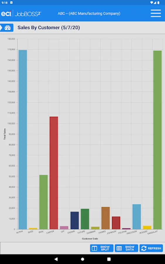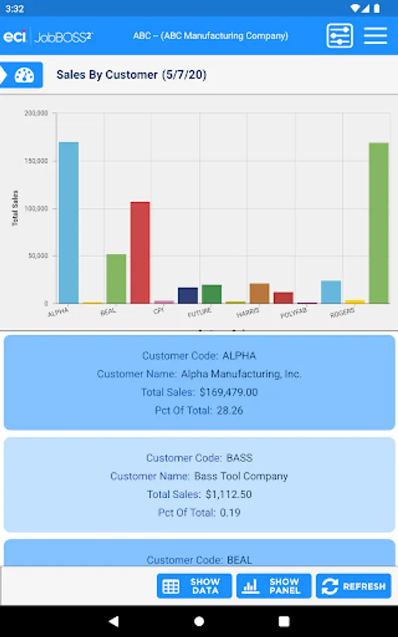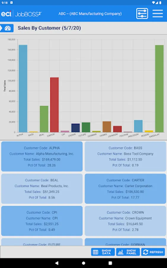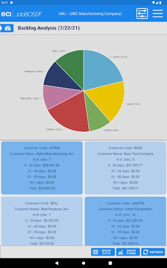 The Dashboards app gives an overall view of your financial information within the JobBOSS² System. This view only app allows for viewing of your current dashboards but you will have the flexibility to create new dashboards within JobBOSS² and add them to the app. The information can be displayed in graphs or data.