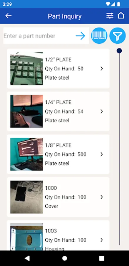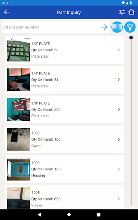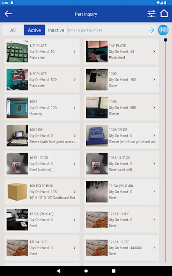 - Information and image of the part. See how many parts are on hand, on reserve, in process, ready to ship, and in need to purchase