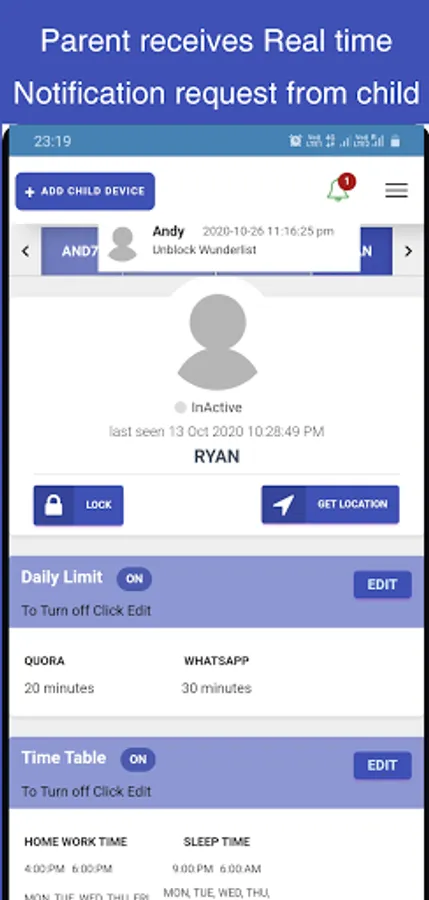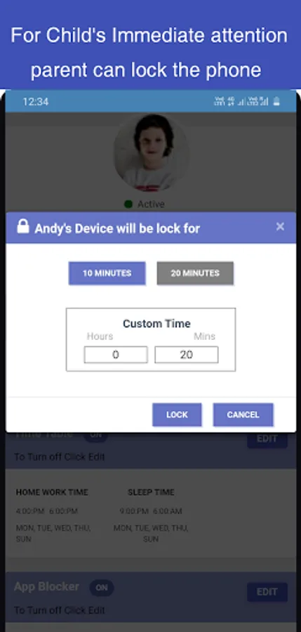 4) Parents can remotely lock the child's phone device for any urgent child's attention from the parent's device.