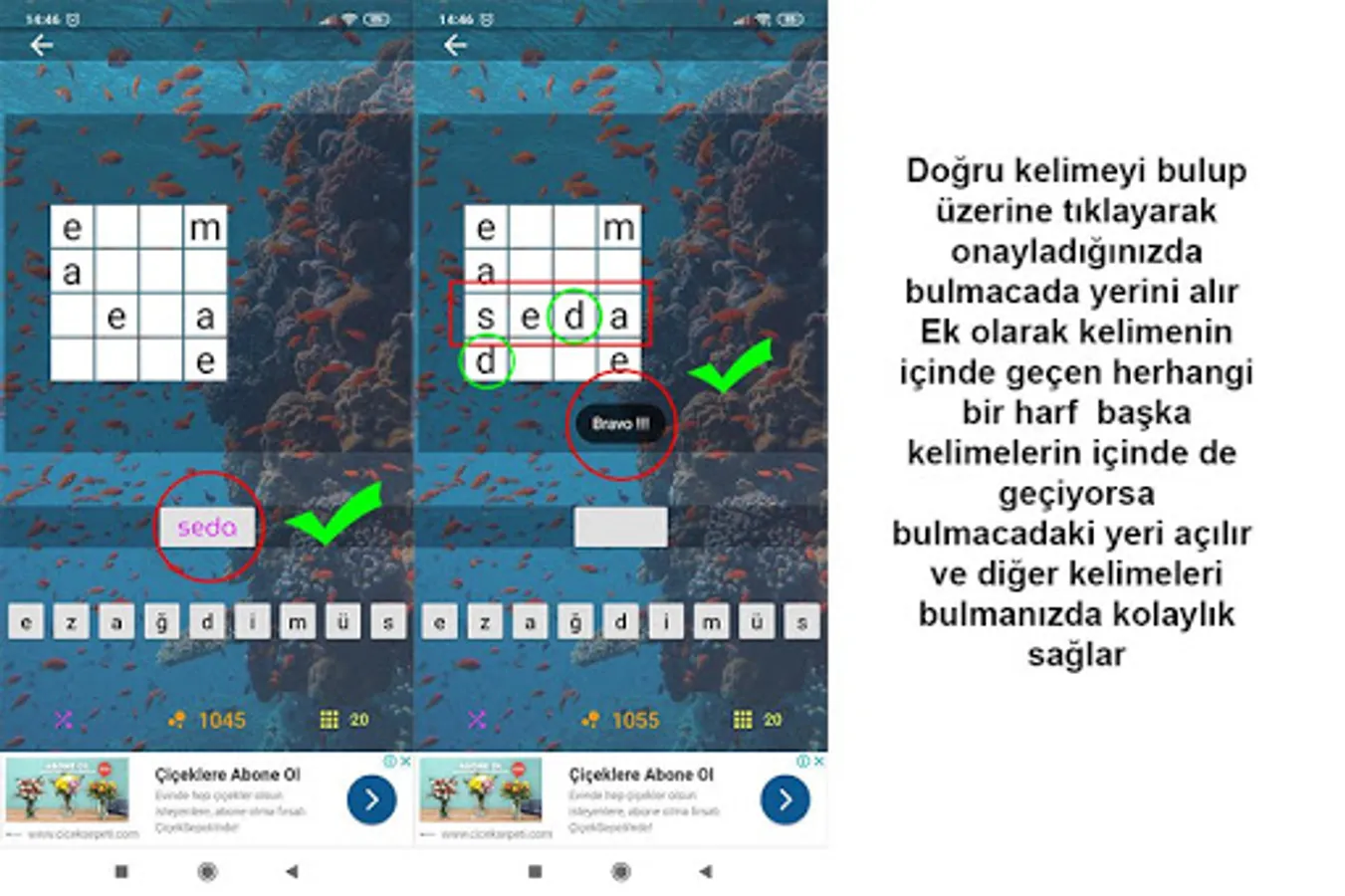 Advanced Turkish word finder game with 59.000+ words 1.400.000+ level constantly changing words