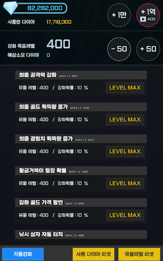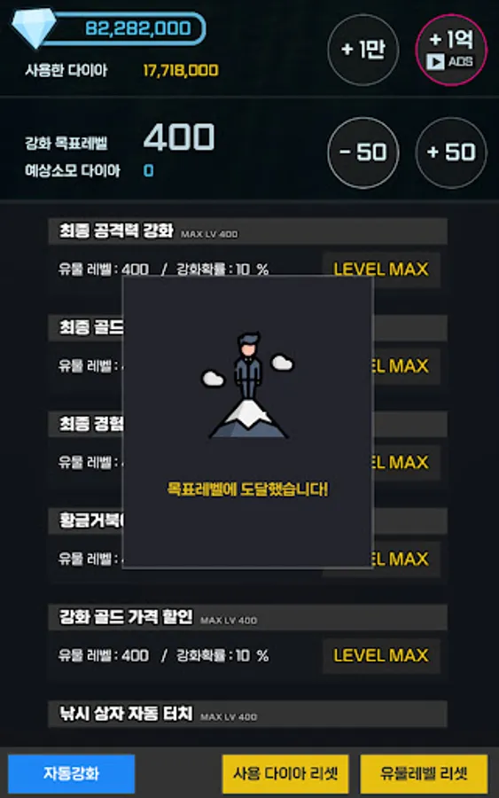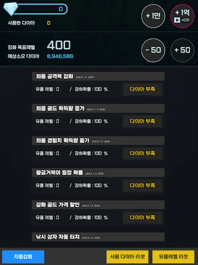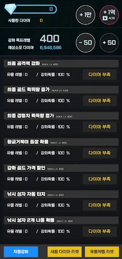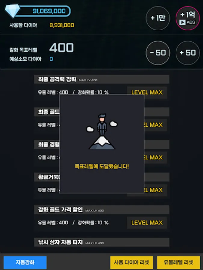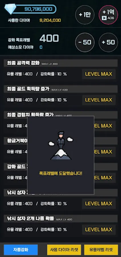 - You can set a target level and compare the expected diamonds that go up to that level with the actual diamonds after reinforcement!