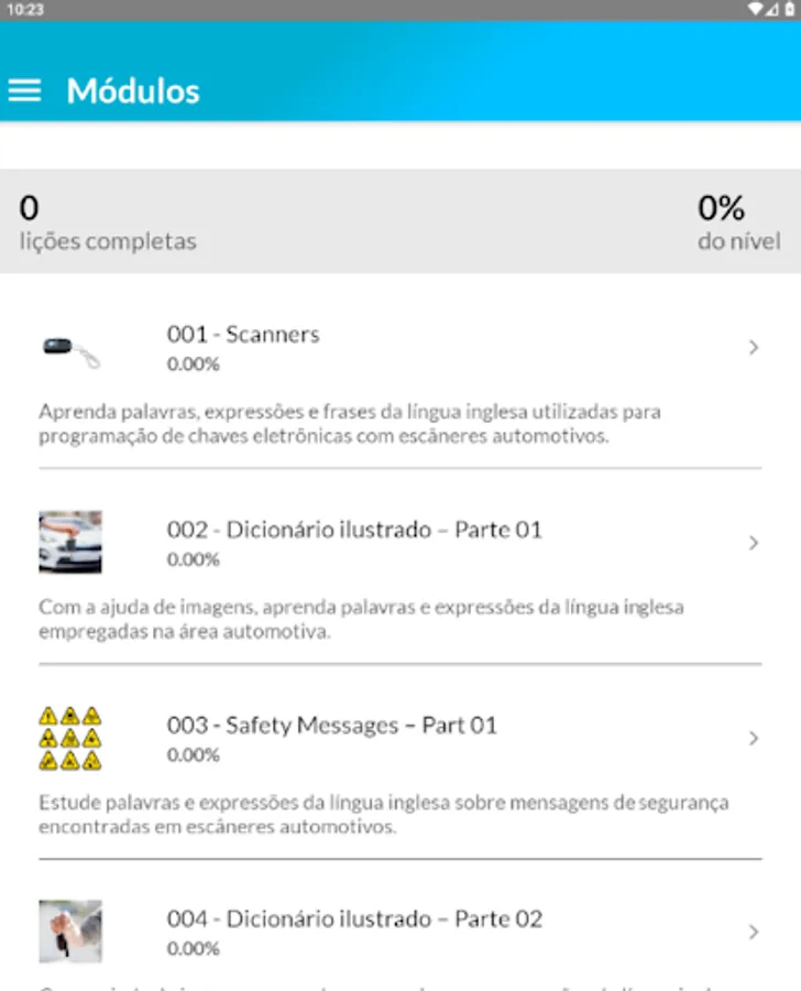 E4Keys – English for Keys activities were developed by English language specialists in partnership with locksmiths and professionals who work with electronic keys. Therefore, the user of E4Keys – English for Keys studies the English language in a contextualized way, seeing and reviewing important terms, expressions and commands for a professional who handles automotive scanners.