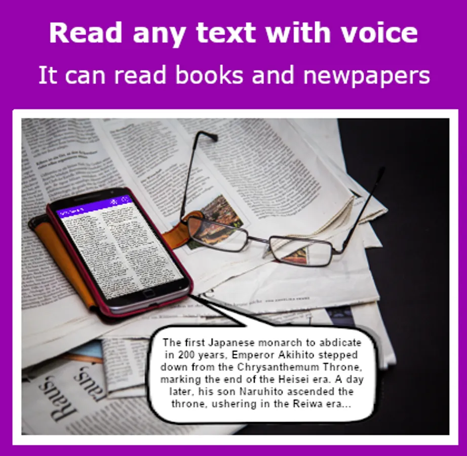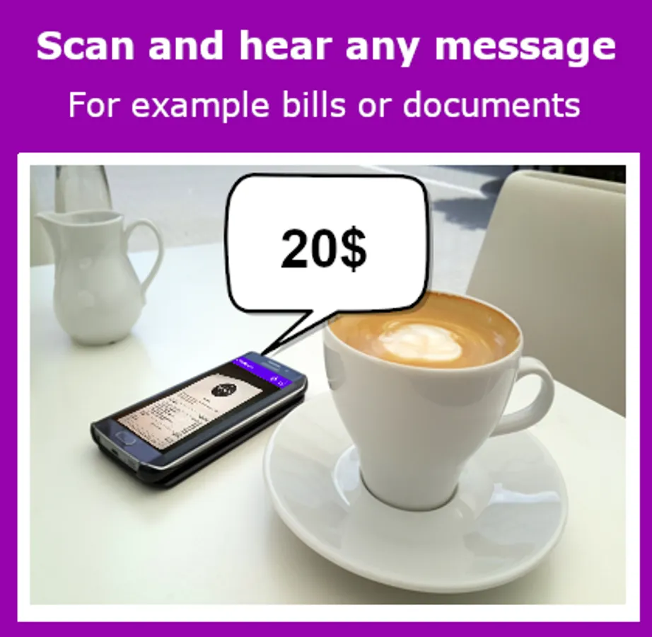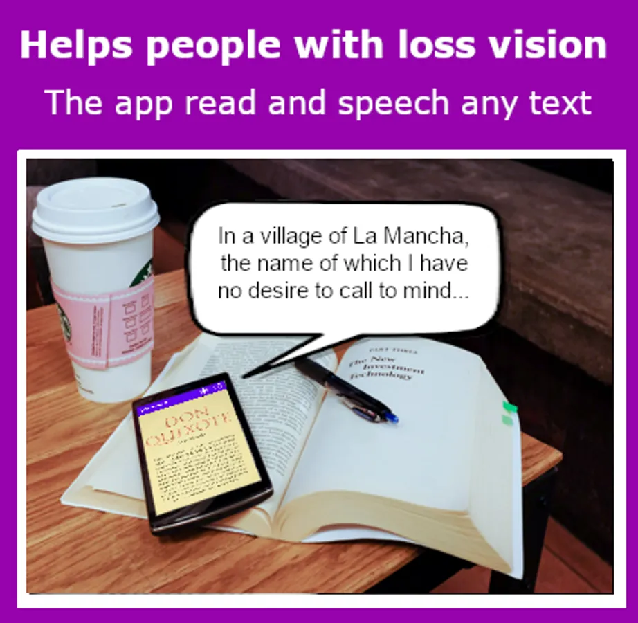Scan, read and reproduces any message or document with a synthesized voice in real time automatically.