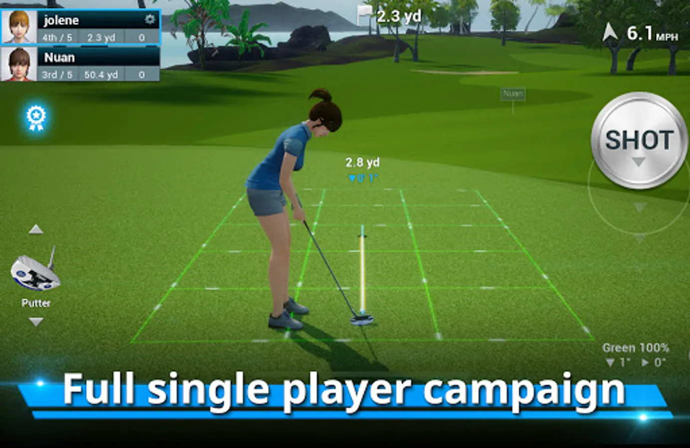 - Compete in real-time multiplayer games against golfers from all around the world in Match play.