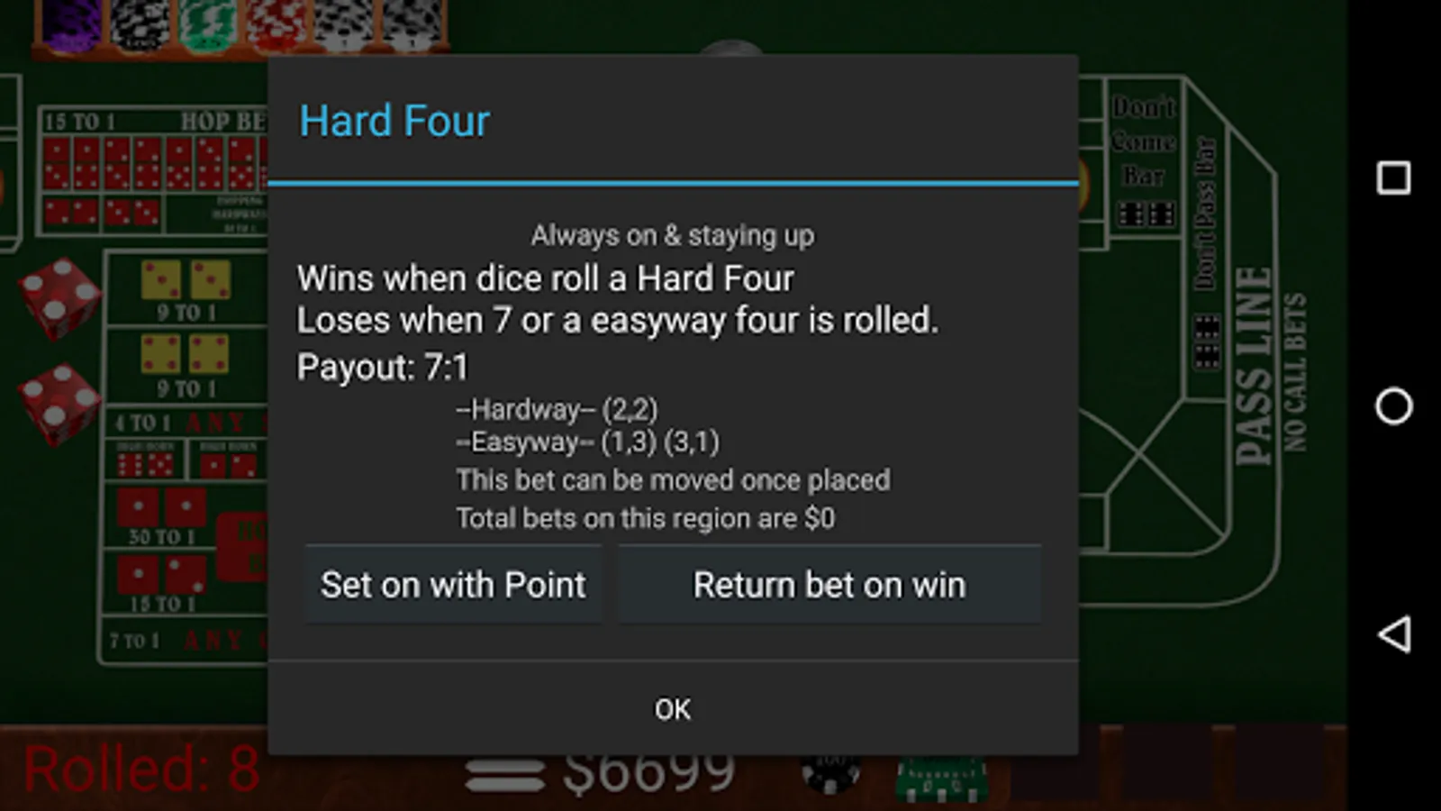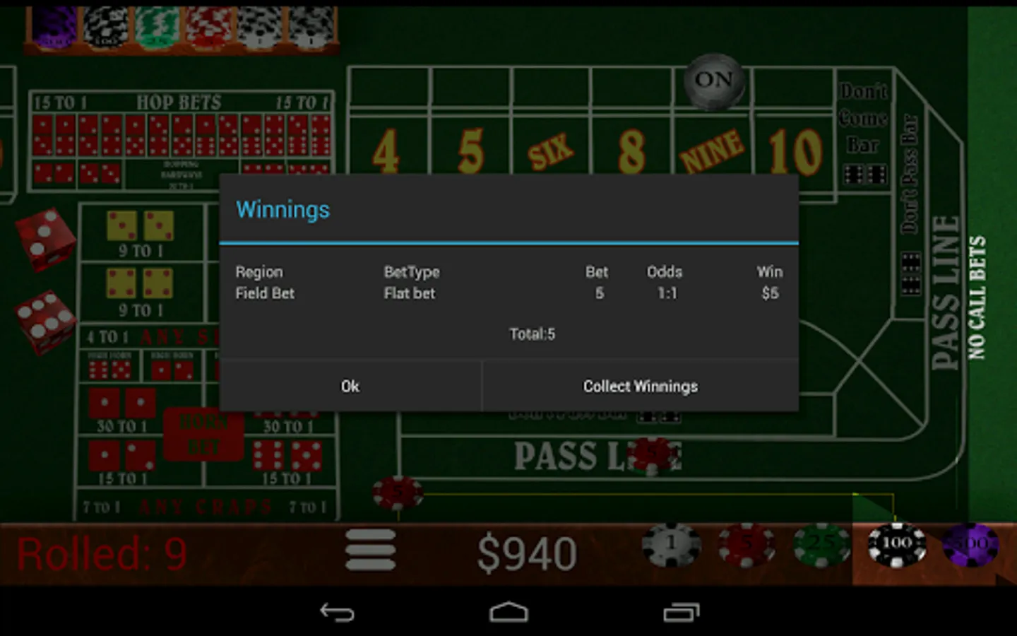 Have fun while you improve your game playing the most realistic craps simulation on the market. This app is built for serious craps players.