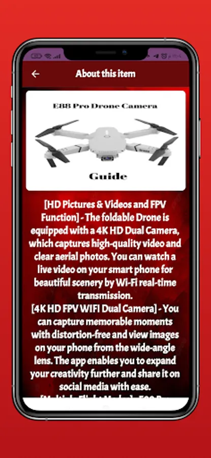 The application E88 Pro Drone Camera Guide provides you with many information for E88 Pro Drone Camera Guide