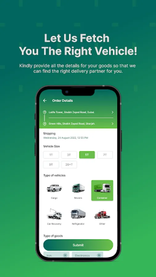 App for booking nearby vehicles for shifting your goods