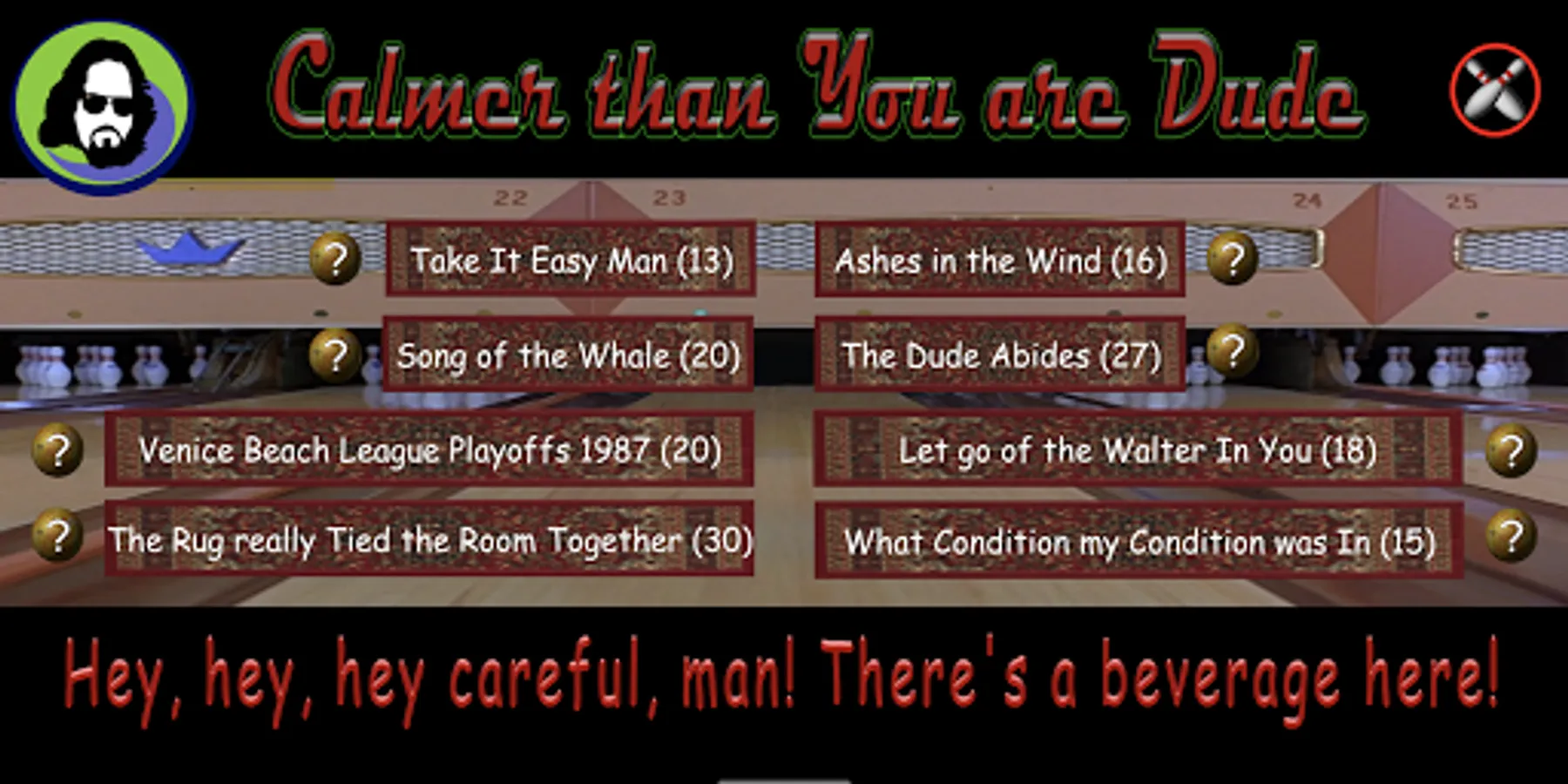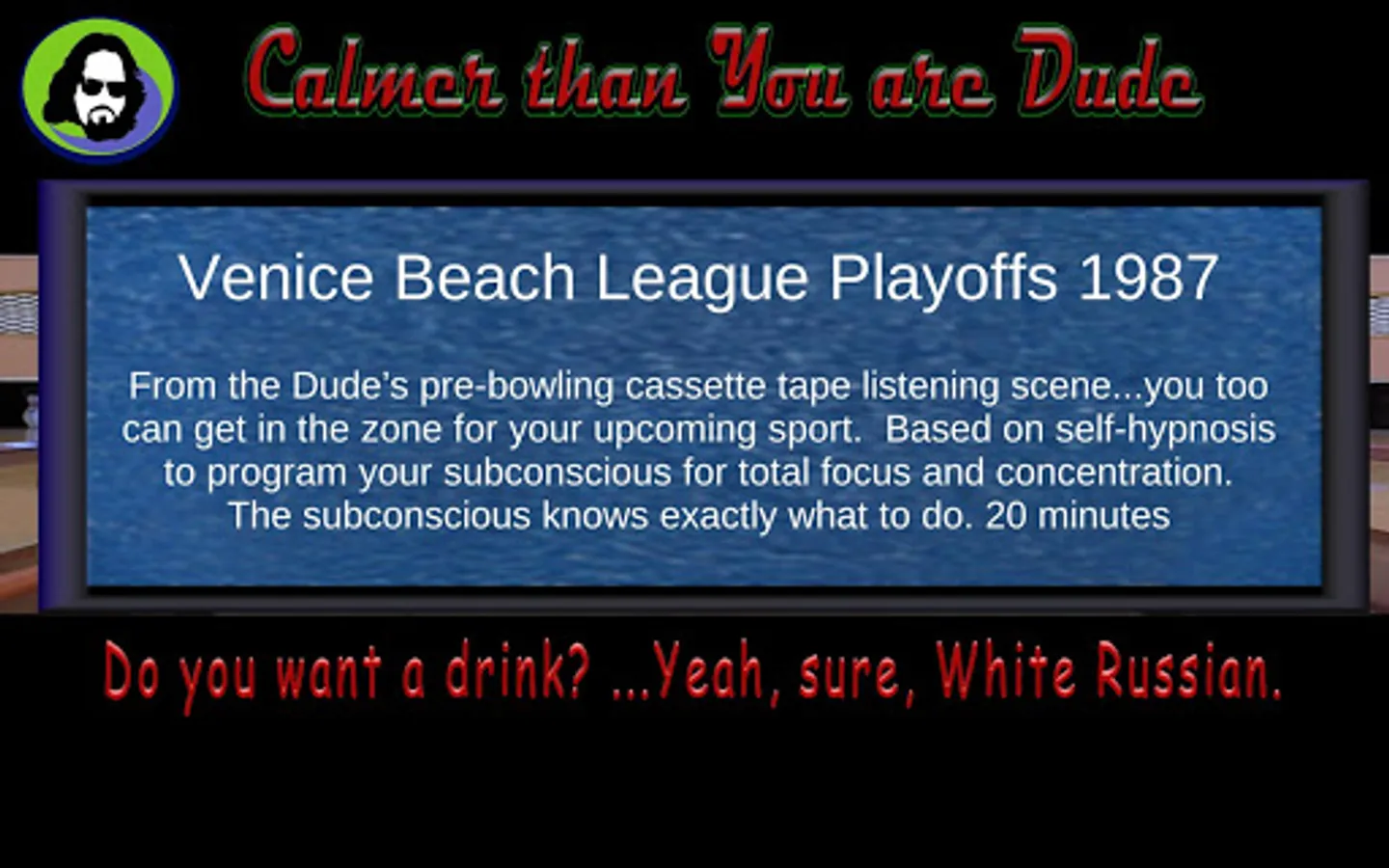 Uptight thinking got you down? Do you need to take it easy man? Maybe let go of the Walter inside of you? Do you need to just Abide? Do you want to be Calmer than the Dude?