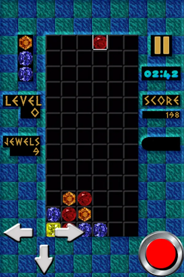 Each of the pieces that appear are formed by three jewels which can be rotated by pressing the button on the right side. Our goal is to match three or more jewels of the same type both horizontally, vertically or diagonally.