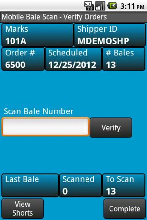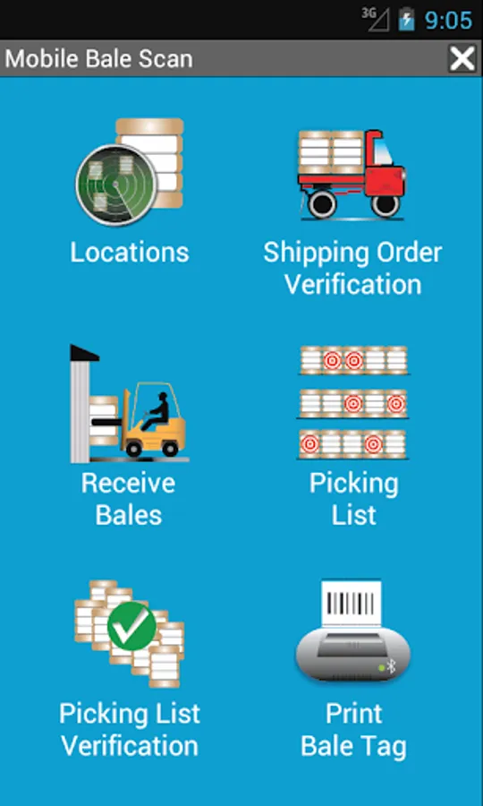 - Select a shipping order to work with by scanning the shipping order or marks barcode, or select manually from a list. Scan the bales being loaded onto the truck.