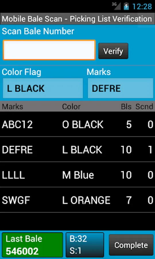 - For verifying bales that have been pulled from stock and are waiting on the floor to be moved to the staging area.