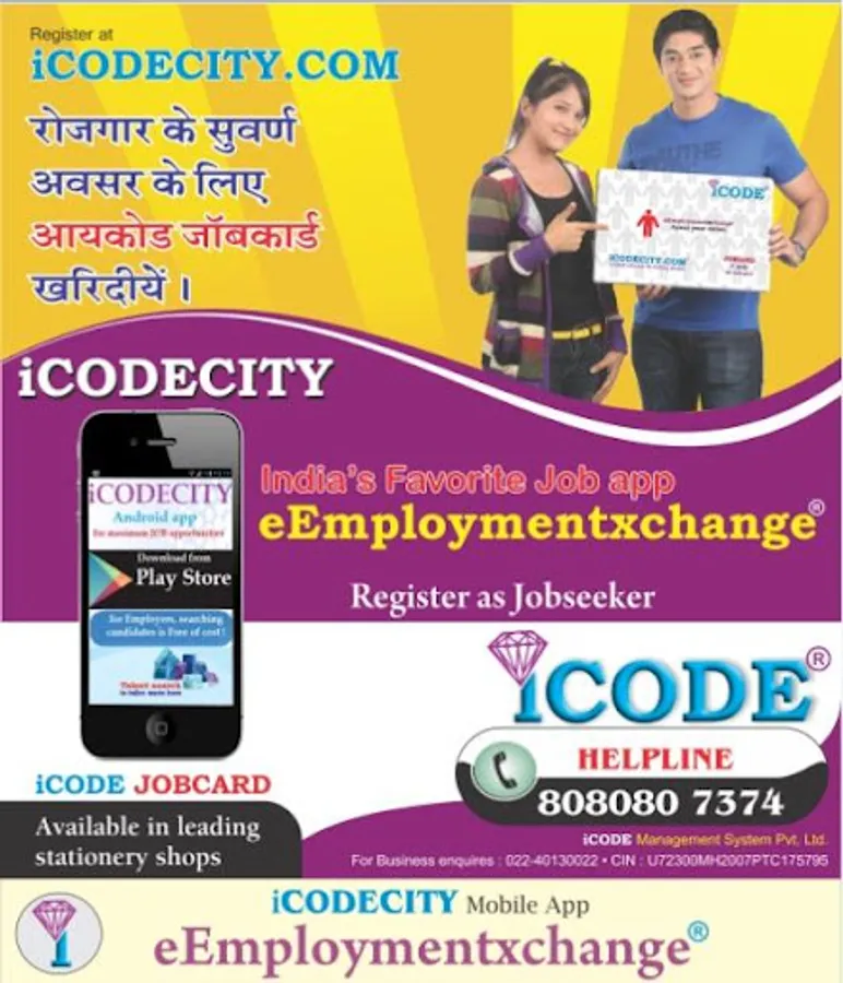 iCODE Management System Pvt. Ltd operates India’s first and only eEmploymentxchange mobile app to connect every work-force from the remotest parts of India with employers having JOB openings across the world.