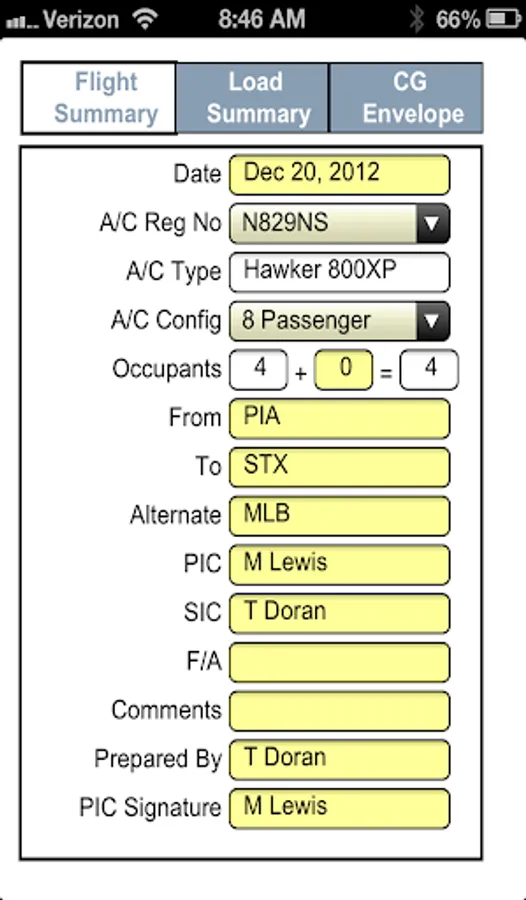 Autograph feature allows crew members to physically sign weight and balance records using a finger or stylus pen and then emails the PDF file for record keeping purposes.