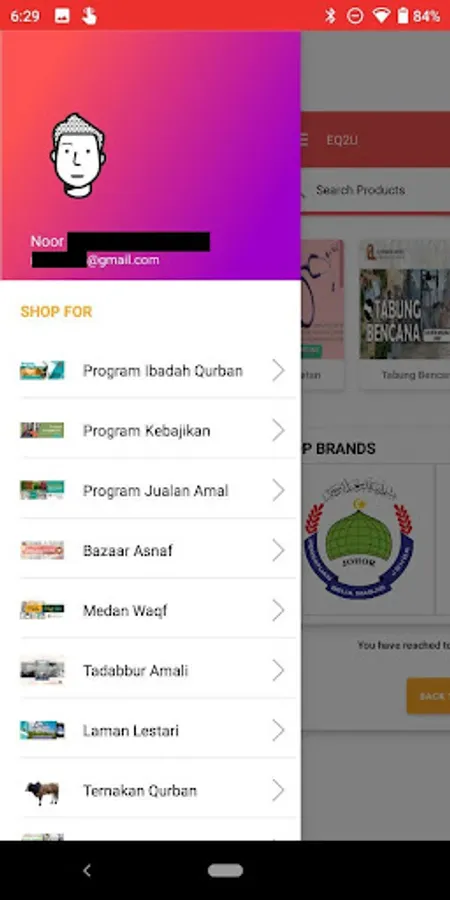 Apps EQ2U ini juga menyediakan platform untuk masyarakat menyertai program-program kebajikan secara dalam talian seperti Program Kongsi Rezeki, Program Infaq Kesihatan, Program Tabung Bencana.