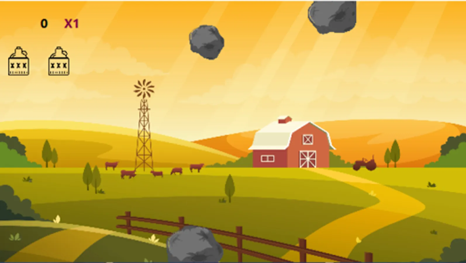 Hurry up farmer! These gosh-darn asteroids are at it again!! Better get your shotgun, get on that truck and hurry down to the fields, or we'll all be nothin' but a big pile of moon-rock-smashed meat!