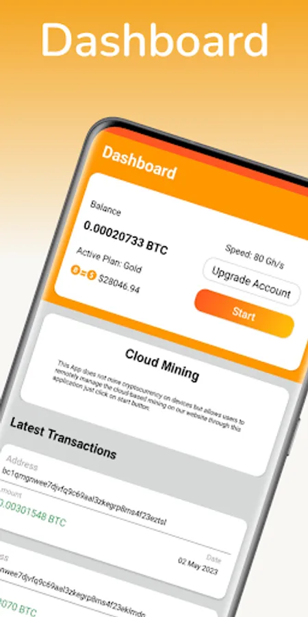 E-Mining is a BTC cloud mining application that allows users to mine Bitcoin without the need for expensive hardware or technical knowledge. The app provides a simple and user-friendly interface that allows users to mine Bitcoin by purchasing mining contracts with just a few clicks. E-Mining is available on Android platforms and can be downloaded for free from their respective playstore.
