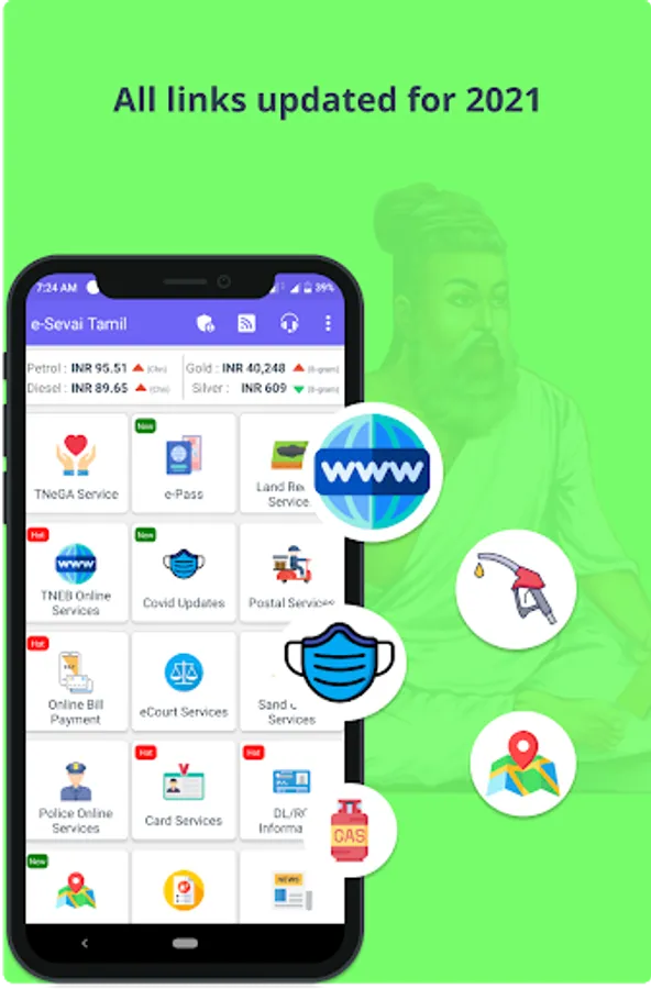 The app aggregates links to websites for popular government services like PAN, Aadhar, TNeGA, Passport, Police and Ration services and displays this information inside a mobile browser.