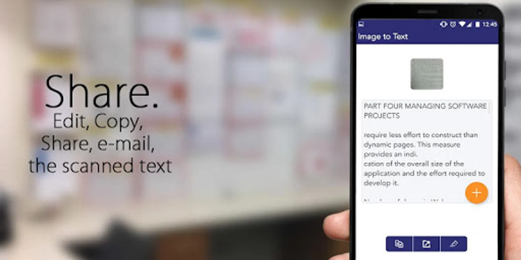 This is a FREE text scanner & converter application that scan your text that can later can be send via email or share on social media or you can copy that text in clipboard and later can be used in any other app.