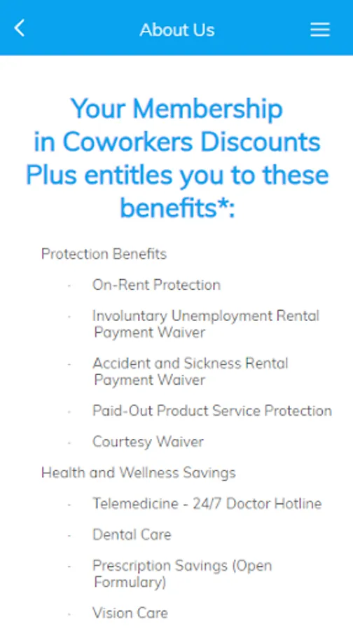 An app for members of Coworkers Discounts Plus program. The app will connect members securely to their discounts and benefits and provide valuable information about the program and how to use it.