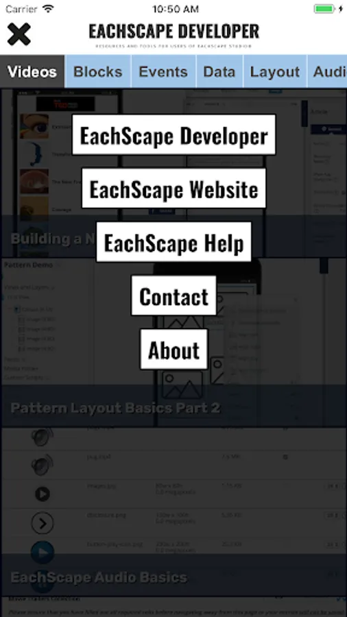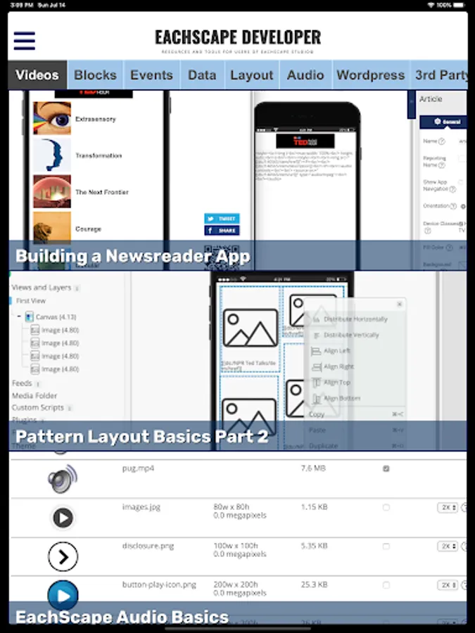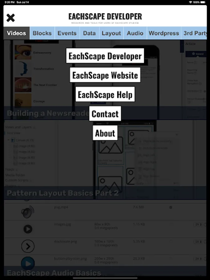 EachScape Developer is a set of tools for developers who use EachScape Studio. It contains instructional videos, setting up and using 3rd party services, tools, code examples, tips and tricks and much more.