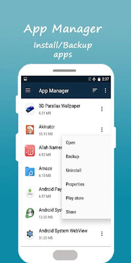 • App Manager: Categorize, uninstall, back up, and create shortcuts to your apps