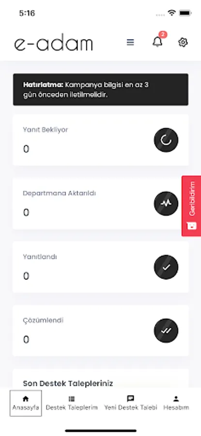 With the E-adam Support panel, you can manage your support requests from your phone.