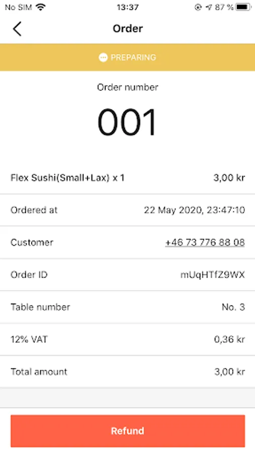 1. Inform customer the order is ready.