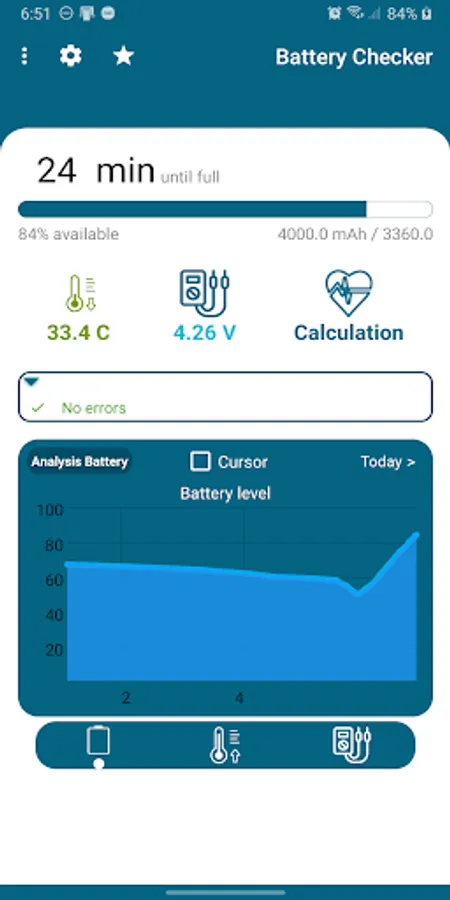 The program monitors the battery while charging and discharging to detect errors and record errors so that you can check them.