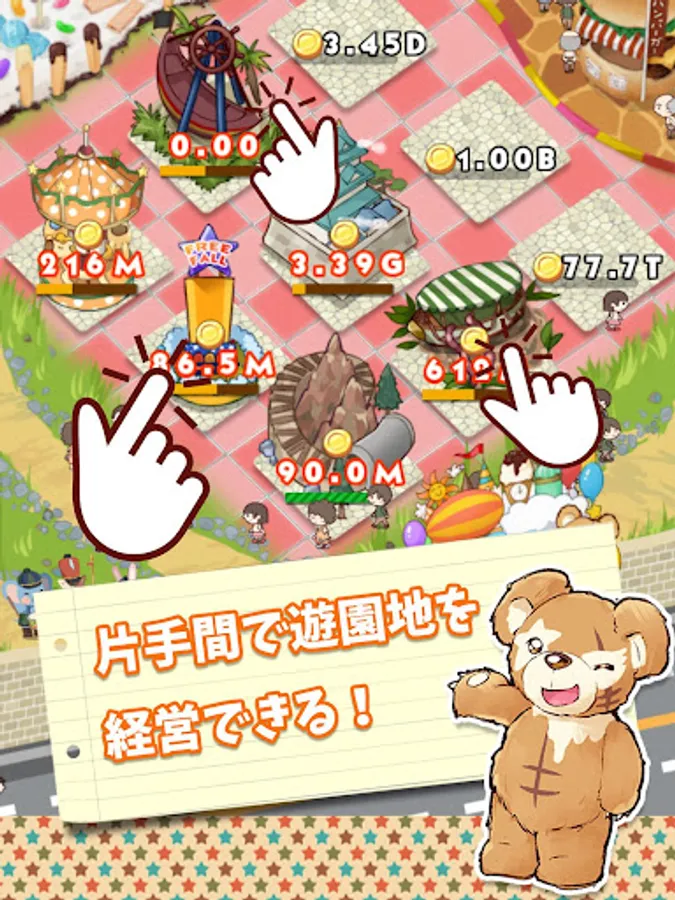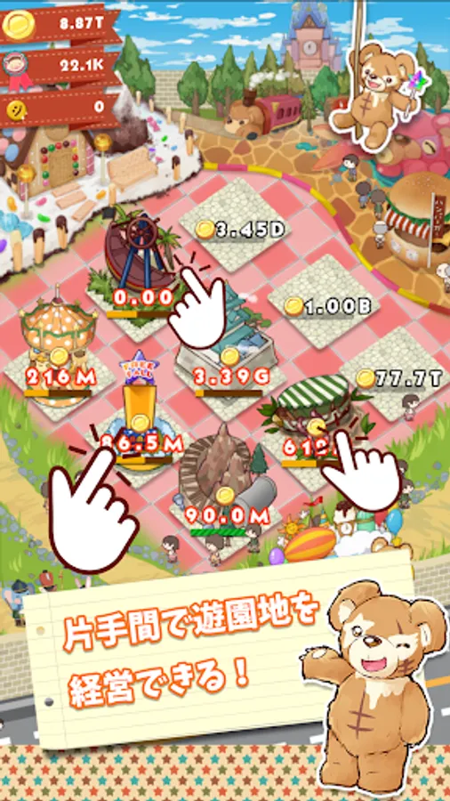 If you build various attractions in the amusement park, you can earn money without permission in time!