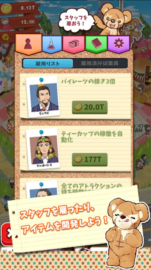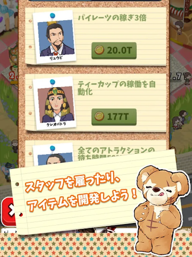 You can strengthen attractions, hire excellent staff, and purchase cute items!