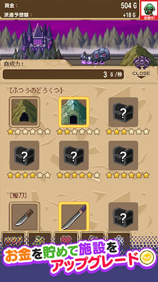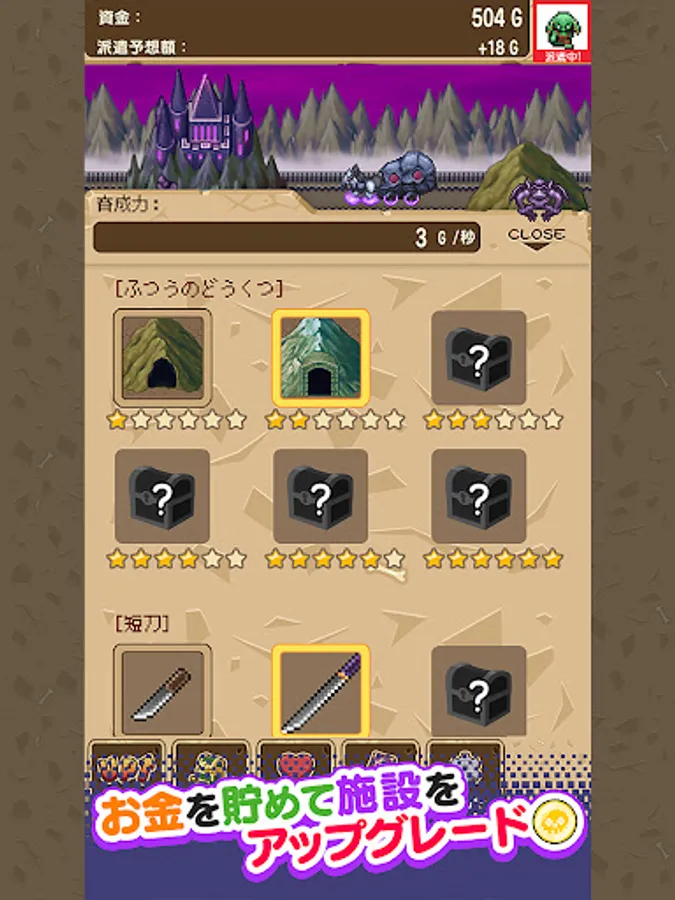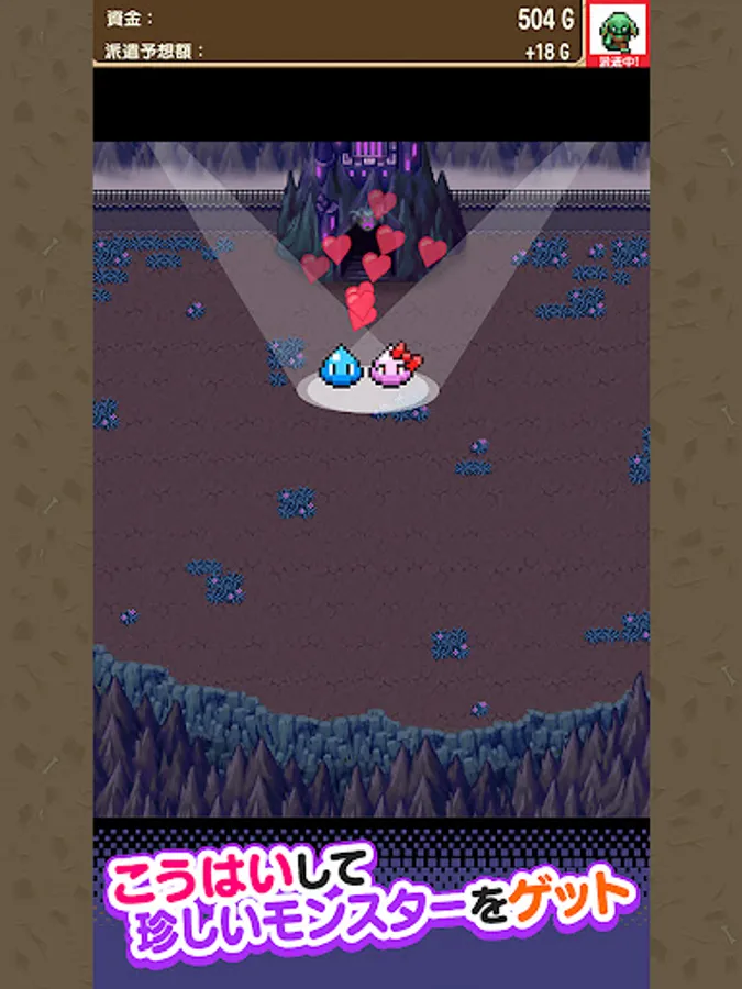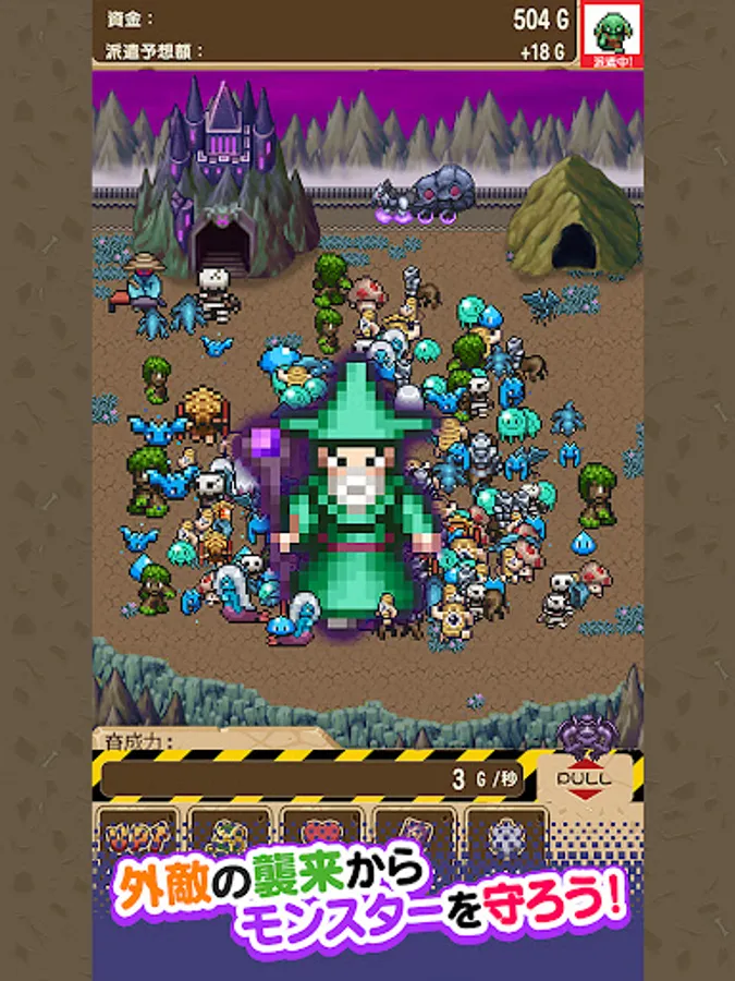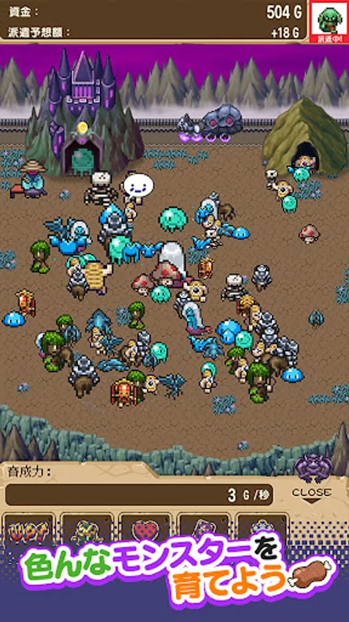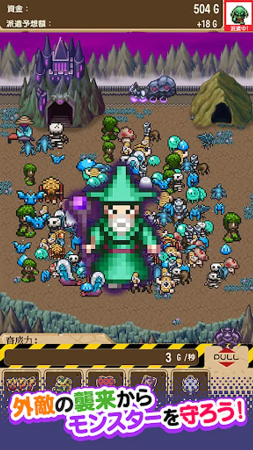 Raise the monsters that come out of the cave by touching them and feeding them, let them enter the Demon King's Castle, and tap the carriage to dispatch them to the dungeon!