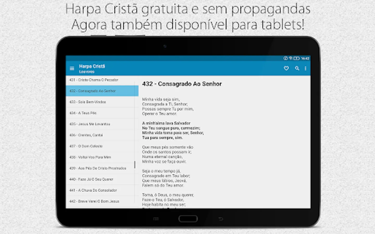 With the iPraise - Christian Harp app, you keep your attention on what really matters: praise to God (there are no advertisements appearing while reading the song). There are 640 anthems including the National Anthem, Anthem to the Flag, Anthem of Independence and Anthem of the Proclamation of the Republic.